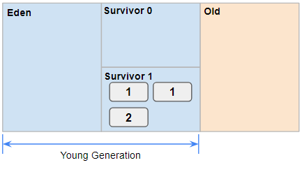 Young Generation 영역은 생명주기가 짧은 객체들이 존재하는 공간이며, 모든 객체다 해당 영역에서 생성되게 된다. Young영역은 Old 영역에 비해 작기 대문에 메모리 상의 객체를 찾아 제거하는데 적은 시간이 걸린다.