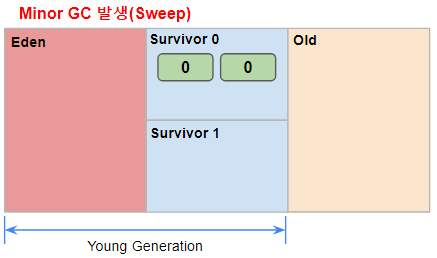 - Sweep : 참조하고 있지 않는 객체, 연결이 끊긴 UnReachable 객체들을 Heap에서 제거한다.