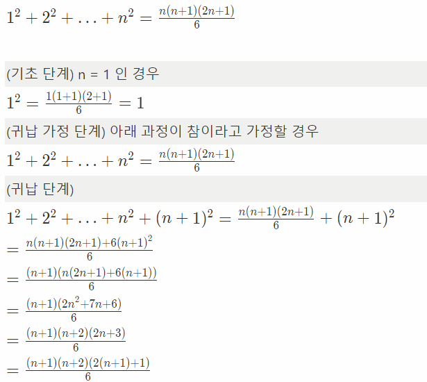 - 귀납 단계 : 귀납 가정에 따라 pn+1의 경우도 성립됨을 보이는 단계