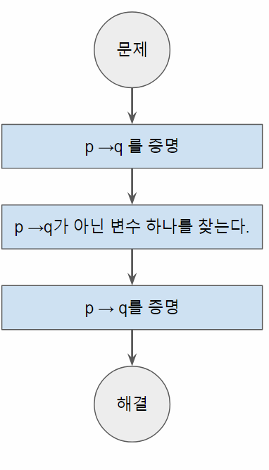 - 가정된 명제로부터 결론을 직접 유도해내기 쉽지 않은 경우 사용
