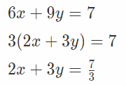 명제 6x + 9y = 7 이라면 x 또는 y가 정수가 아님을 증명7/3은 정수가 아니므로 2x+3y도 정수가 될 수 없다. 따라서 x와 y는 정수가 아니다.