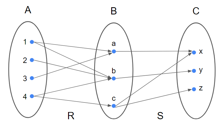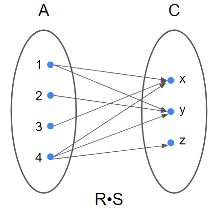 단 한가지 주의할 점은 R1의 치역이 R2의 정의역이 될 경우에만 합성 명제를 만들 수 있다.