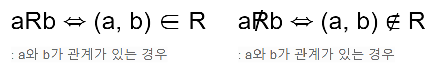 2개의 집합 사이의 관계를 이항(binary) 관계라고 하며 보통 관계를 말할 때는 이항 관계를 의미한다.